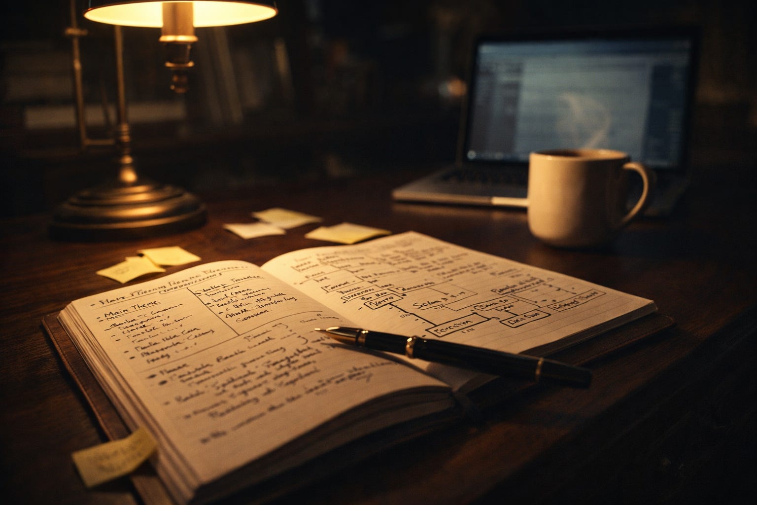 因此我在開始要寫一部小說時,也會需要先有一份筆記,主要是記錄三個問題:故事主題、人物簡介以及故事大綱。